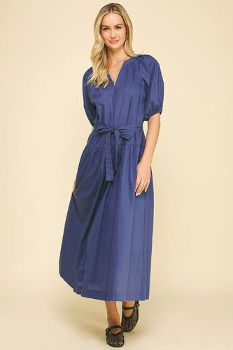 Dorian Brown and Blue Faux Suede Floral Button Down Dress with Ruffle Bottom