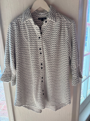 Jaylen Button Down Fleeced like Top with Zig Zag Pattern