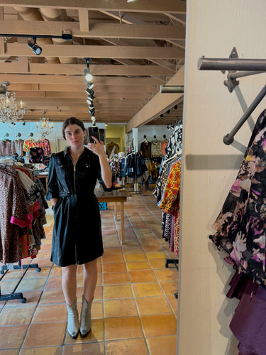 Randall Black Faux Leather dress with Tie and Zipper Front
