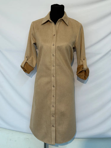 Kimberley Light Taupe Faux Suede Button down shirt Dress