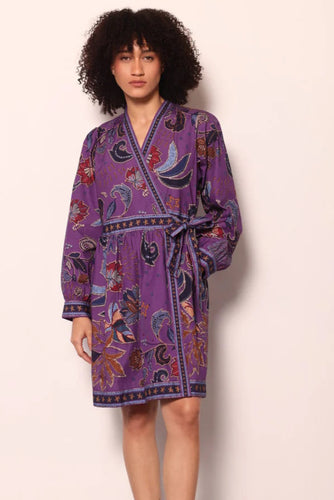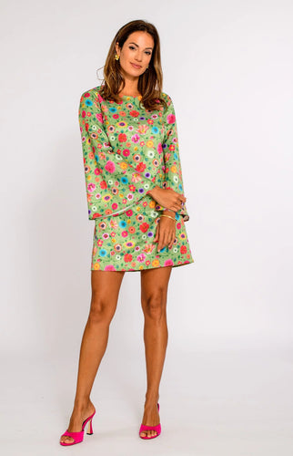 Darla Pleated Dress with Gold Buttons and 3/4 Sleeves