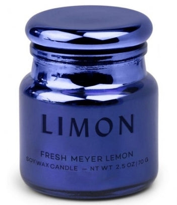 The electroplated glass is available in a range of vibrant hues and has a glass lid. Each 2.5 oz candle is perfectly sized for gifting or for adding to any corner of the home.