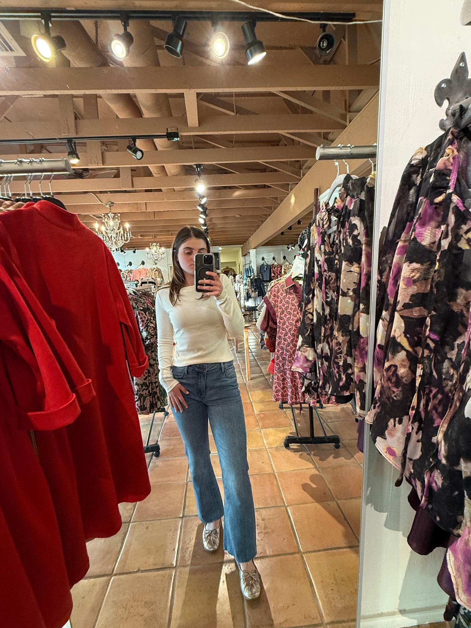 Cream colored long-sleeve top. Great for layering