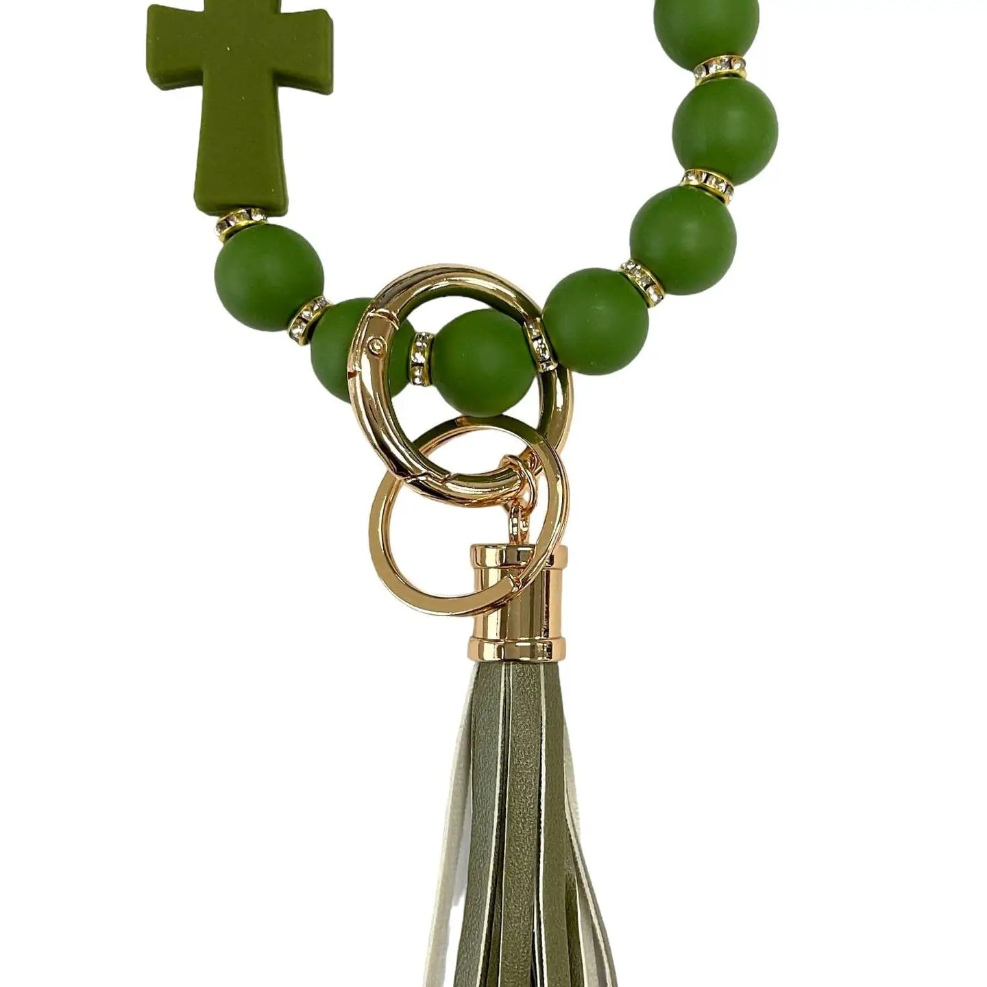 Elevate your everyday carry with this sophisticated cross beaded key chain, meticulously crafted to blend spiritual symbolism with refined style. Each bead is carefully selected and arranged to create an intricate cross pattern, while the graceful tassel adds movement and dimension. Perfect for securing keys while making a subtle fashion statement, this accessory works beautifully as a bag charm or personal keepsake. The durable beadwork ensures lasting quality, making it an ideal gift for those who appreciate meaningful, artisanal details in their accessories.