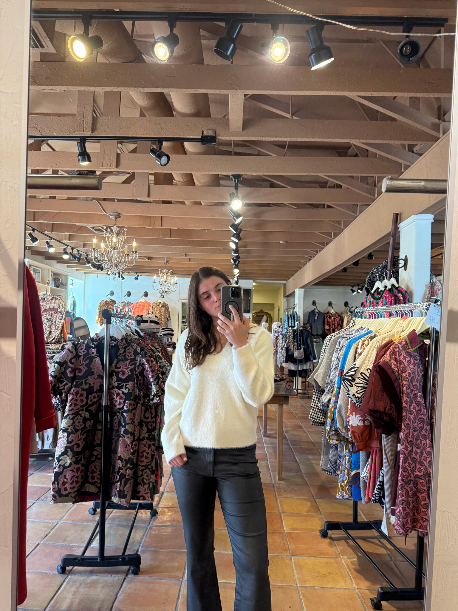 The Revel V Neck Fluffy Ivory Sweater combines luxurious softness with elegant simplicity. Crafted from a plush, textured fabric, it offers exceptional warmth and comfort while maintaining a refined silhouette. The classic V-neck design enhances layering options and adds a subtle touch of sophistication, making it ideal for both casual and polished outfits. This sweater is a versatile staple for elevating your wardrobe with timeless style and cozy functionality.